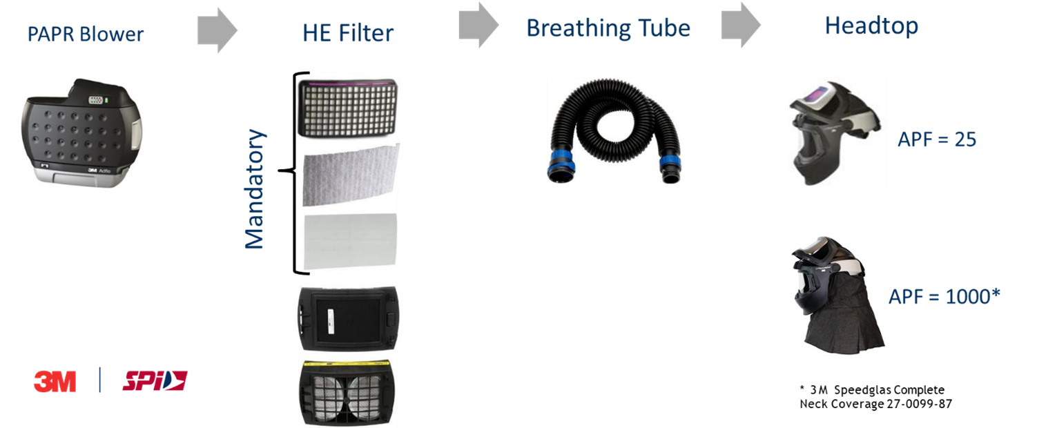 PAPR systems are used frequently when welding. A powered air-purifying respirator (PAPR) is a type of personal protective equipment designed to protect workers from inhaling contaminated air.