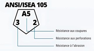- Résistance à la coupure (au centre supérieur du pentagone)