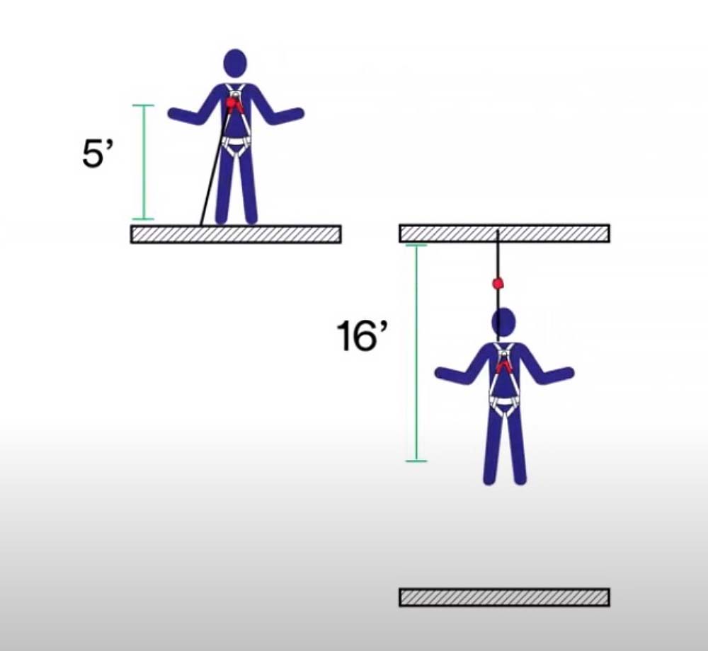 Self-retracting lifelines shorter than 10 feet generally must be worn on the worker's harness, but can attach to an anchor point that is low to the ground. This is the opposite for longer products.